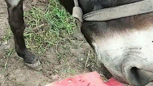 2. 动作可爱:驴子吃瓜时的动作也是一大看点。有的驴子用嘴巴轻轻咬着西瓜,好像在品尝美食;有的则是一口咬下去,西瓜汁瞬间喷溅出来,场面十分搞笑。